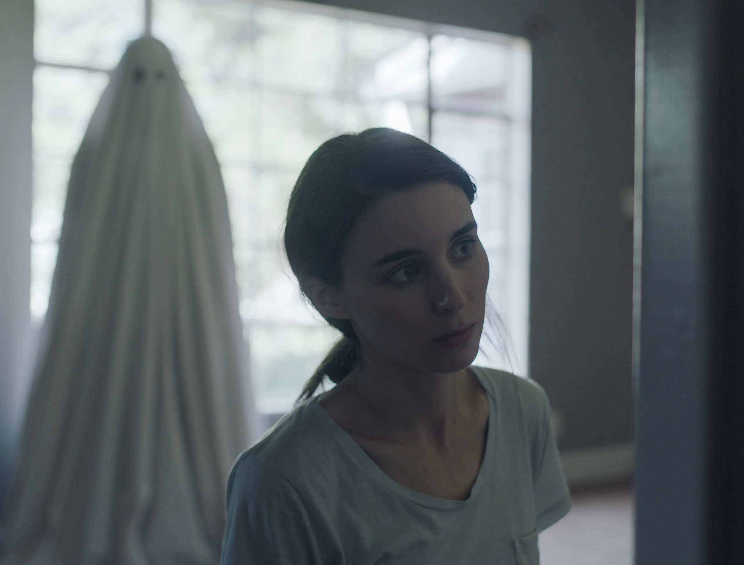 A young couple – nameless characters portrayed by Casey Affleck and Rooney Mara – reside in a house. He’s a musician. She wants to relocate. They banter, bicker, and show affection like any pair in a sexual relationship. Minutes into the film, the man is killed in an automobile accident. For the remainder of the story, we follow his ghost as it watches over his lover, the house, and the life they shared.