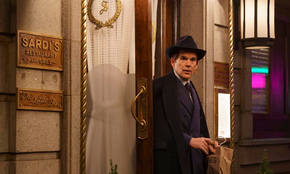 On a cold November night, lyricist Lorenz Hart (Hawke) leaves the production of the stage play “Oklahoma!,” from his former collaborator Richard Rodgers (Andrew Scott), early. He heads for a drink in Sadi’s Bar, owned by his old pal Eddie (Bobby Cannavale). Upon entry, the two recreate a scene from “Casablanca.” It immediately presents the viewer with how strong their bond is, as well as the delightfulness of Hawke’s performance–best in years, one might say. Their discussion begins as the drinks are poured. It quenches Lorenz’s thirst for lyrical poetry, which, in his view, “Oklahoma!” lacks in spades. He would rather leave early and drown his troubles in whisky and gin than stay for the overture. Hart does not have a disdain or hate towards the playwright Rodgers.