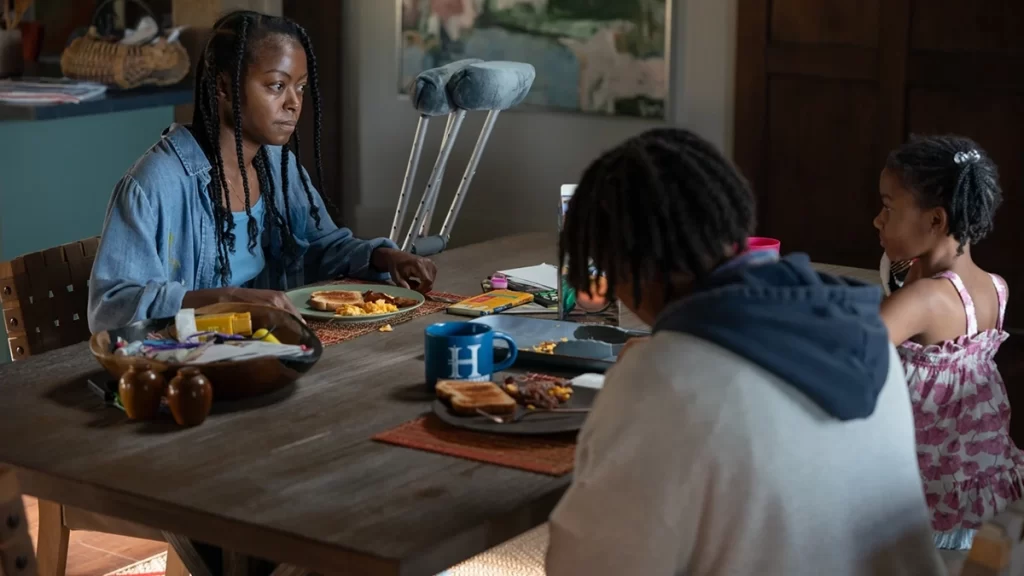 The setup is deceptively simple: Ramona (Danielle Deadwyler), a widow still reeling from the sudden death of her husband, tries to hold together her fragile family in a half-renovated farmhouse when a strange figure in a long black veil appears in their yard. She doesn’t move, doesn’t explain herself, just lingers—a Gothic intruder rendered in broad daylight. But what seems like a classic haunting soon reveals itself as something far more insidious: the woman in black is less an external threat than a manifestation of Ramona’s despair, her grief, and her suicidal impulses.