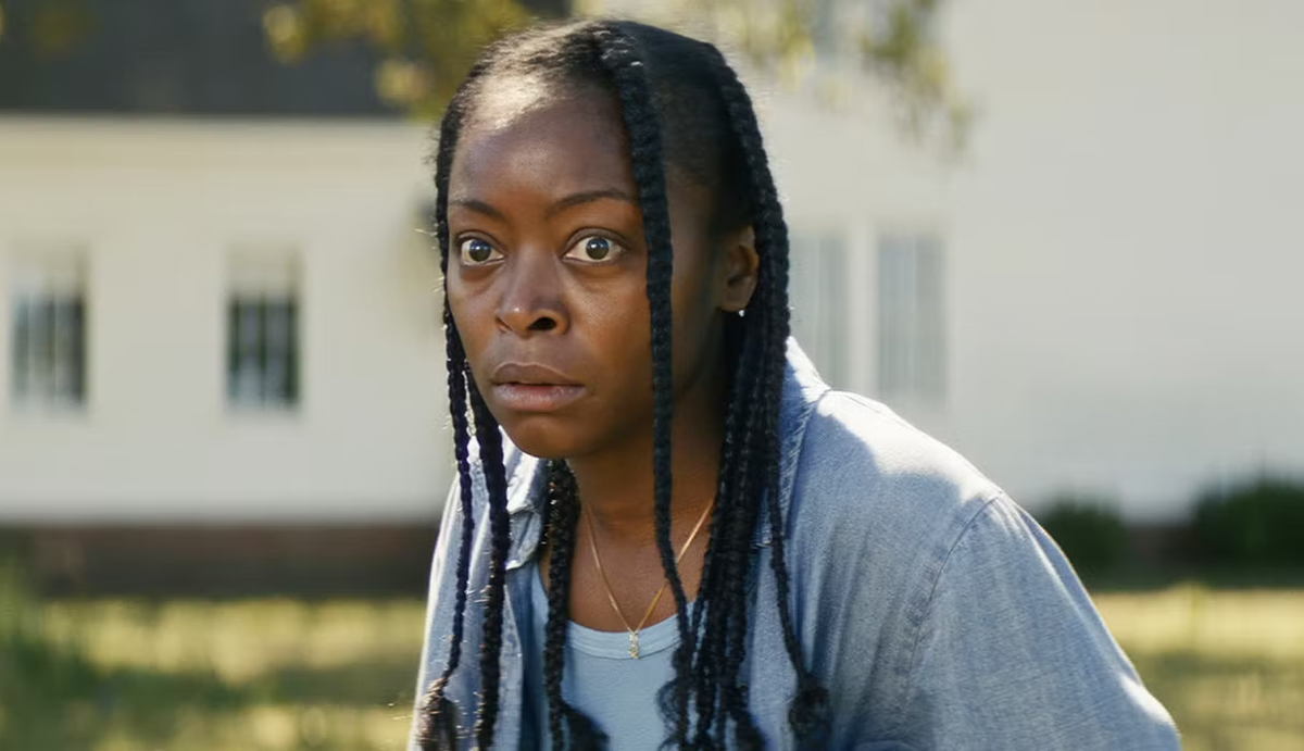 The figure in the yard, played by Okwui Okpokwasili, is one of the most striking horror presences in recent memory. She does almost nothing in the conventional sense—and yet she’s impossible to ignore. Shrouded in a thin black veil, she radiates menace and magnetism in equal measure. Her performance reminded me of Tony Todd in “Candyman:” a striking seducer who unsettles not through aggression but through sheer presence. But where Todd’s Candyman carries a sensual, mythic menace directed outward, Okpokwasili works inward, tethered by a cerebral link to Danielle Deadwyler’s Ramona. She isn’t just a haunting figure—she is the haunting thought, the whisper that refuses to leave the room, the physical incarnation of despair. That cerebral intimacy makes her not just scary, but profoundly destabilizing.